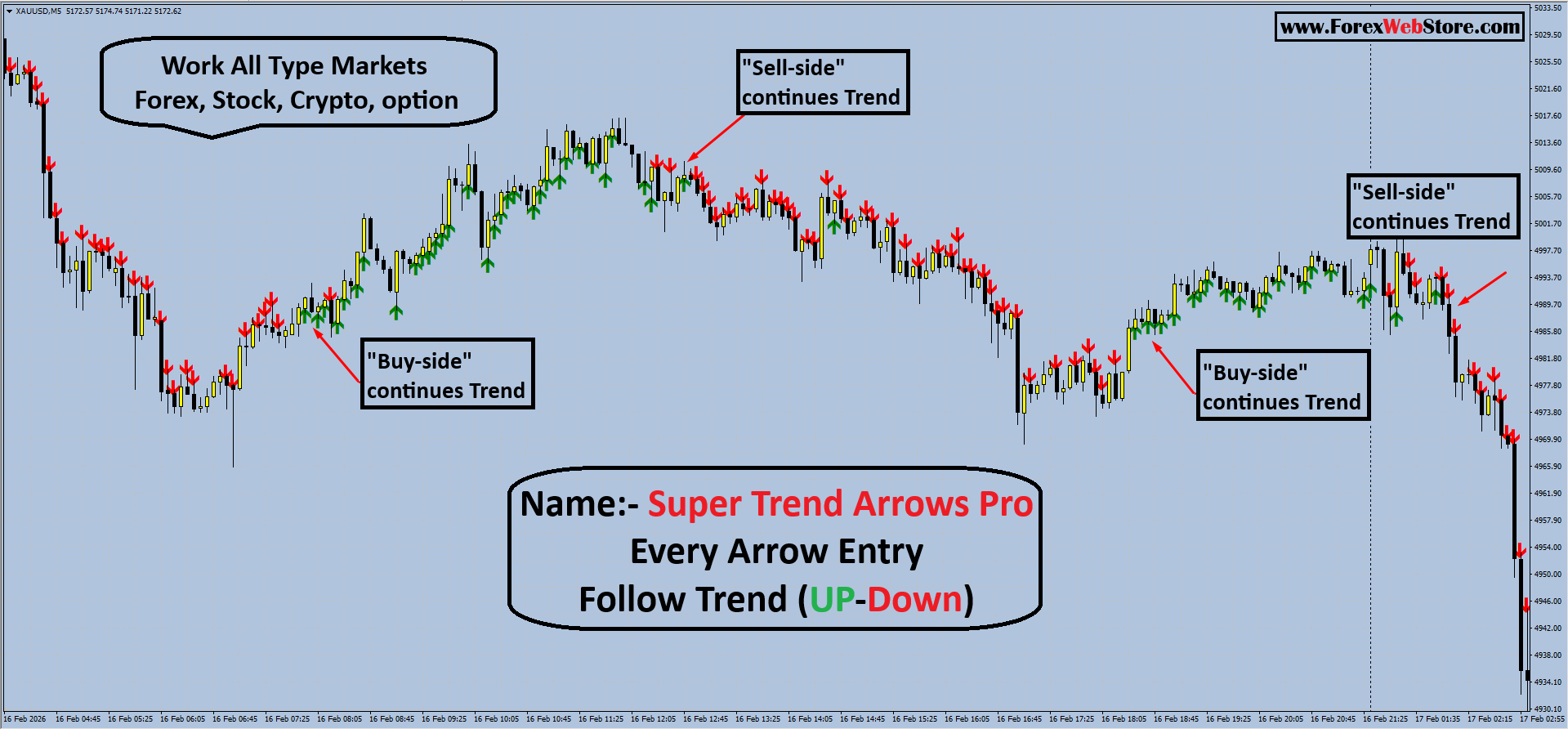 Sell Entry (Short): Enter when a Red Down-Arrow appears. This indicates a “Sell-side” trend continuation.
